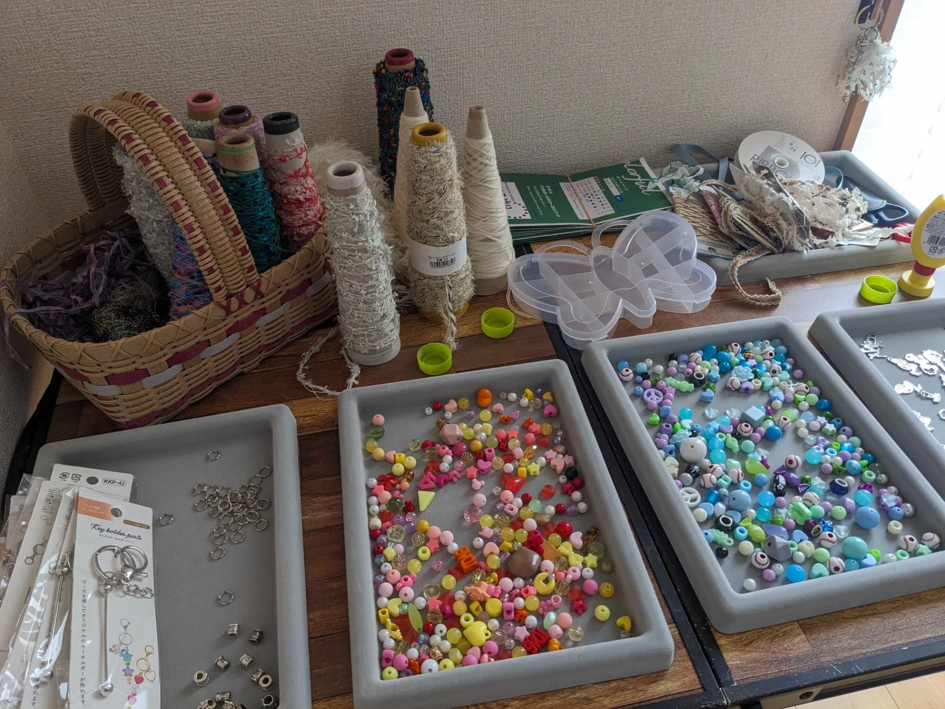 今回は、島津奈津子さん(B型事業所いろどり サービス管理責任者)が講師とし来てくださり、みんなで華やかなバッグチャーム作りをしました。