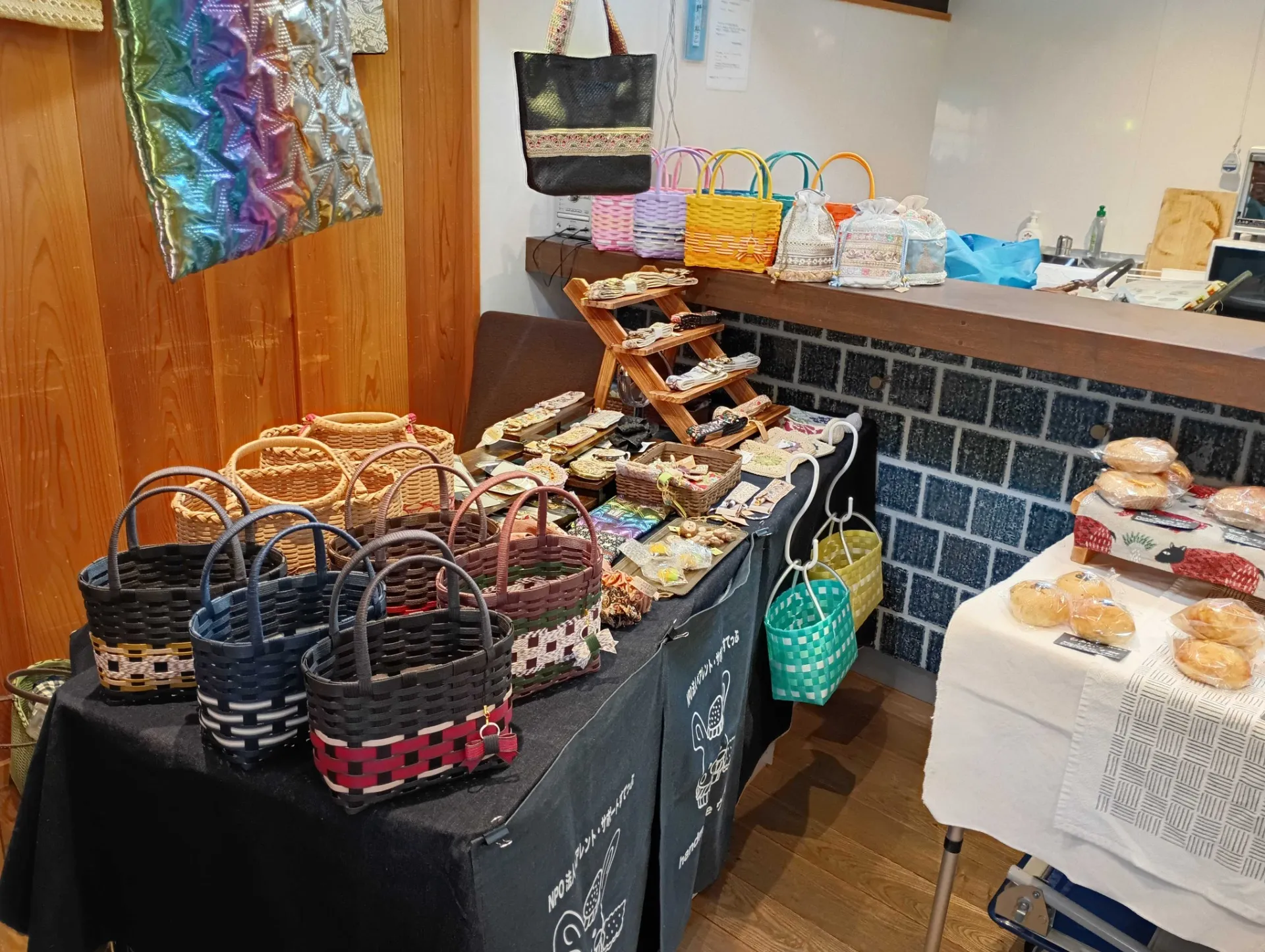 handmadeウサギの作家”結”さんも、お店番にきてくださり、「お散歩ミニバッグ」「かけあげバッグ」「PPバンドバッグ」の新作を展示販売しました。